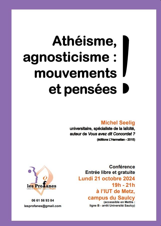 Conférence de Monsieur Michel Seelig, universitaire, spécialiste de la laïcité, auteur de Vous avez dit Concordat et César et Dieu, aux éditions L’Harmattan)